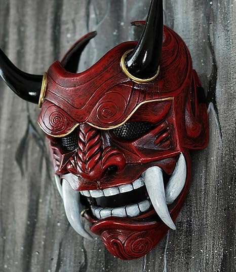 Topeng ini dirancang untuk melindungi wajah serta memberikan rasa takut kepada musuh.